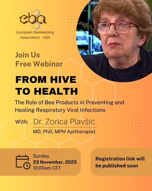 Ovaj vebinar je dio kontinuiranih napora EBA da promoviše naučna saznanja i poveća svest o prednostima apiterapije i ključnoj ulozi pčela u ljudskom zdravlju i blagostanju.